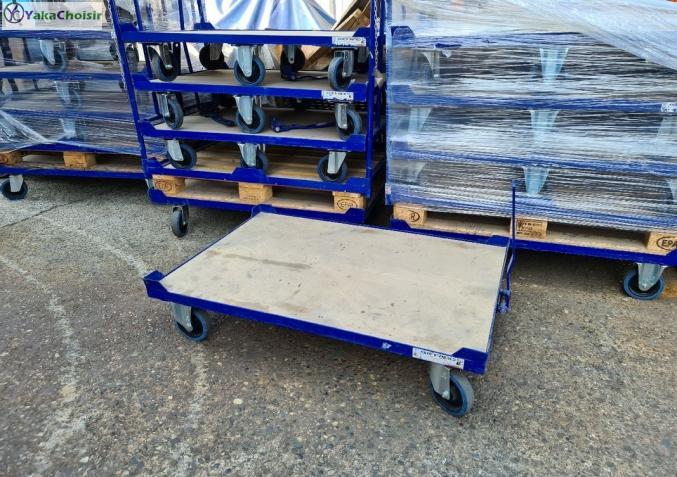 Vends des chariots de manutention conçus pour porter des palettes Europe charge lourdes avec timon de tractation