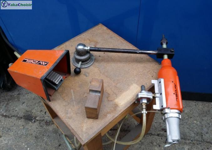 Vends une riveteuse pneumatique AVDEL sur sa table de montage avec sa pédale de commande en parfaite état de fonctionnement
