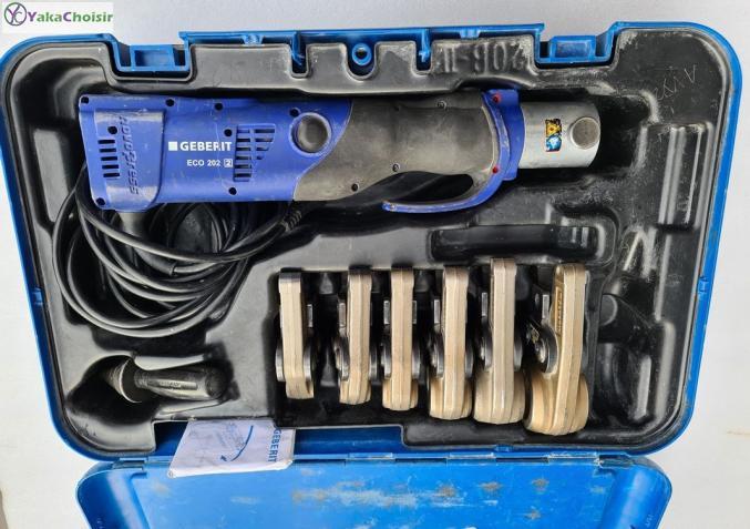 Vends une pince à sertir, Sertisseuse électrique GEBERIT ECO 202-2 dans son coffret d'origine avec 6 mâchoires